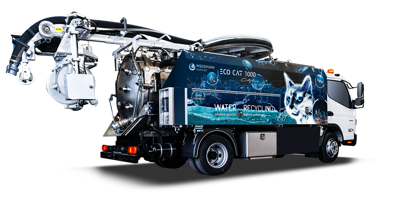 Thanks to its compact design, it is ideally suited for navigating city centers with narrow streets. As an ALL-IN-ONE system, it combines the performance of a small water recycler with the ECO SCOUT camera nozzle: cleaning, accessing, and documenting sewer lines and house connections using the proven WIEDEMANN turning technology.