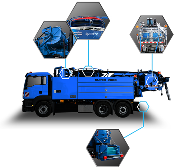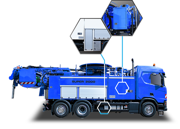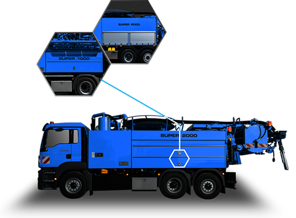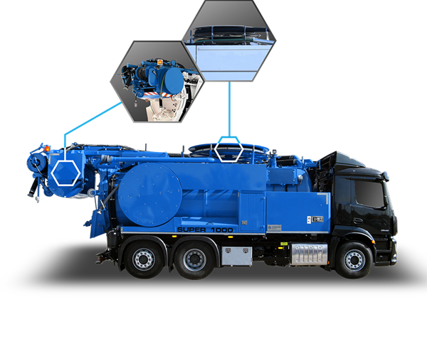 SUPER 1000 is a sewer cleaning vehicle with one-tank-system, one of the most versatile recirculators on the market with a range of available configurations.