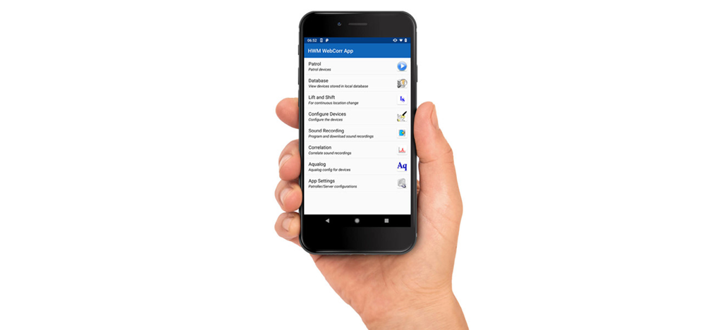 Програмне забезпечення WebCorr підтримує повноцінний аналіз, включаючи завантаження звукових файлів і можливість запитувати записи звуку з розміщених реєстраторів. У поєднанні з функцією кореляції в додатку це дозволяє користувачу знаходити витоки безпосередньо на місці.